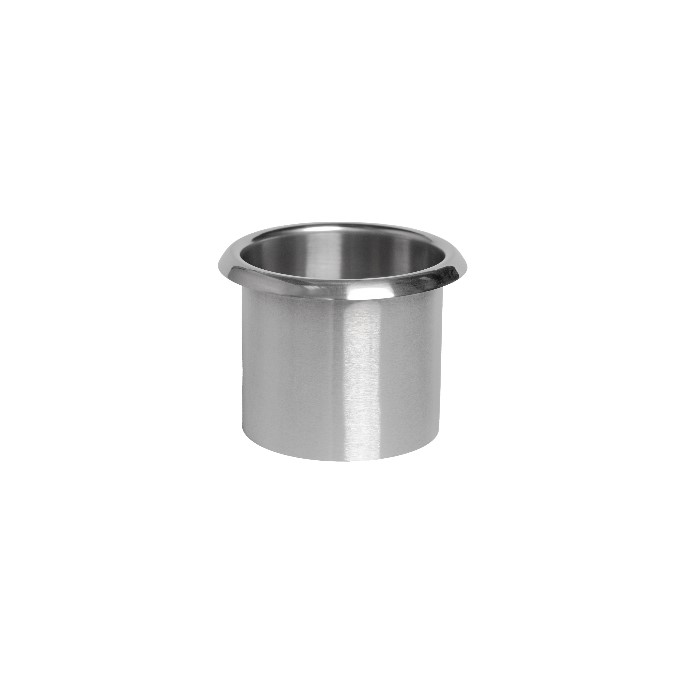 Brida enrollada y superficies expuestas de acero inoxidable pulido brillante. Diámetro exterior: 175 mm (6 15/16"), diámetro interior: 140 mm (5 1/2"), profundidad del conducto: 130 mm (5"). Recorte para encimera: 140 mm (5 5/8") de diámetro. Permite el acceso al depósito de residuos (no incluido) ubicado debajo de la encimera.